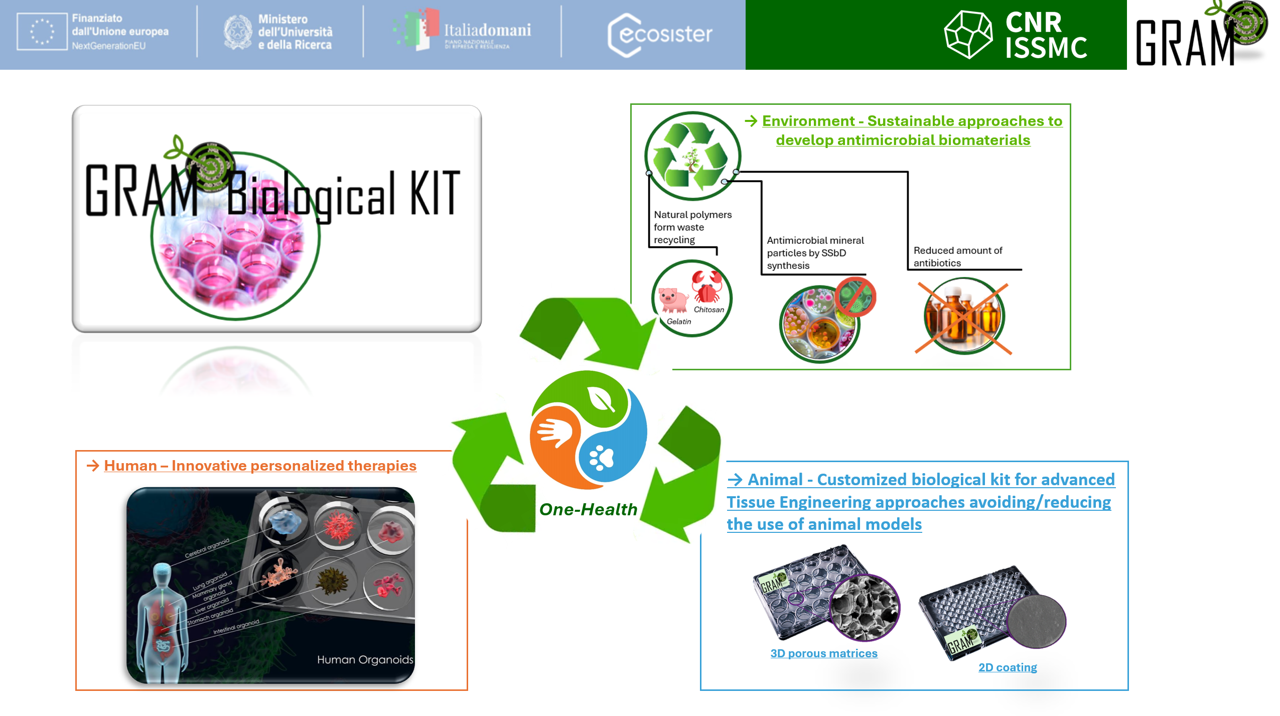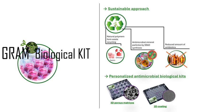 The project will identify a kit composed of multi-well plates incorporating personalized 2D and 3D biomaterials facilitating in vitro studies without the use of auxiliary antibiotics. This new cell culture system will contribute to reducing pollution due to discarding high amounts of antibiotics. Furthermore, the production of the matrices using biomaterials derived from waste recycling will benefit the environment and reduce the overall impact of production.