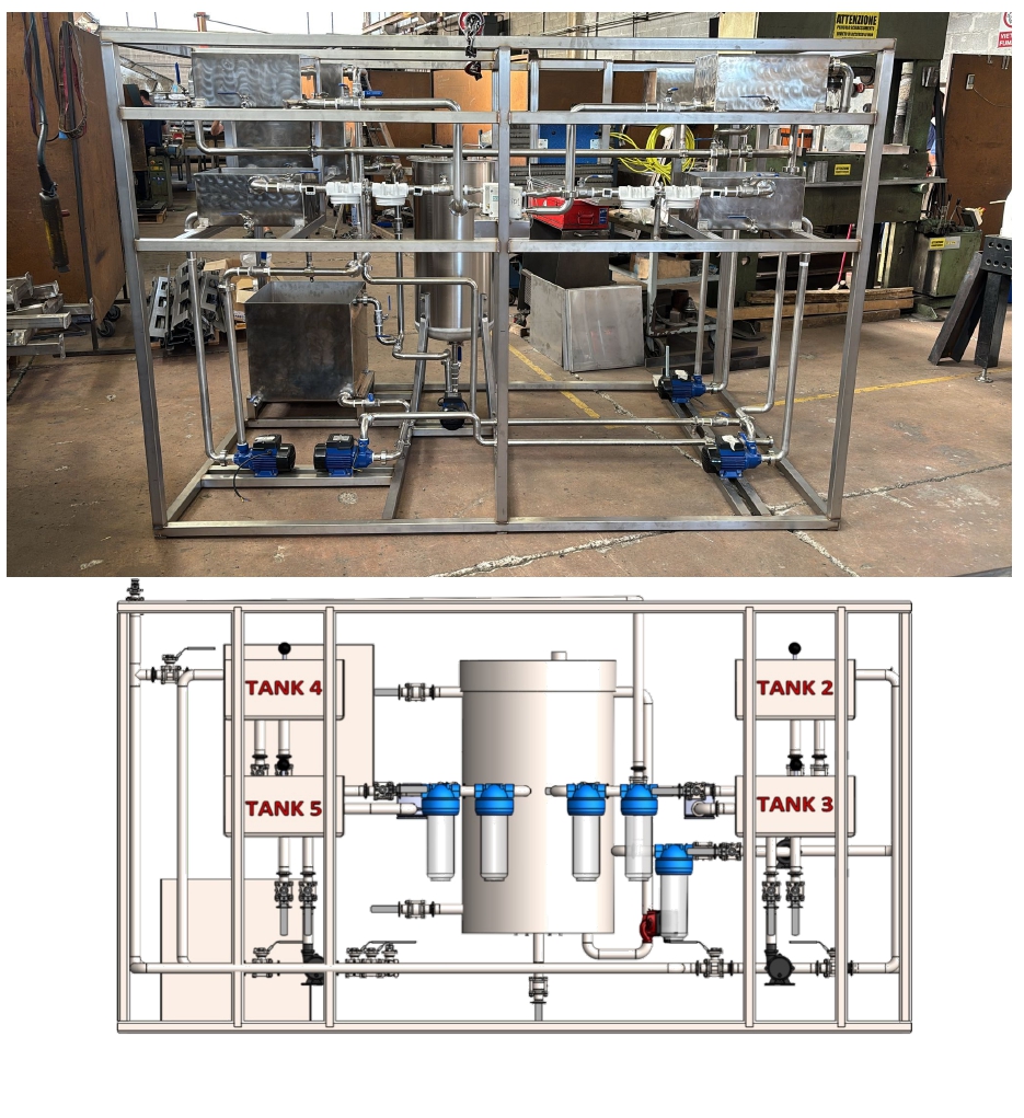 optimization of module sizing to create a customizable prototype adaptable to multiple production environments (e.g., Mutti S.p.A., Industria Conserve Alimentari, GFC Chimica Srl, Culligan Italiana S.p.A.) already collaborating with PURE partners
